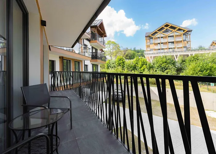Dolina Szczescia Apartamenty Pine - Dream Apart 斯克拉斯卡波伦巴距离地质博物馆仅2千米。 客人会在露台休息。